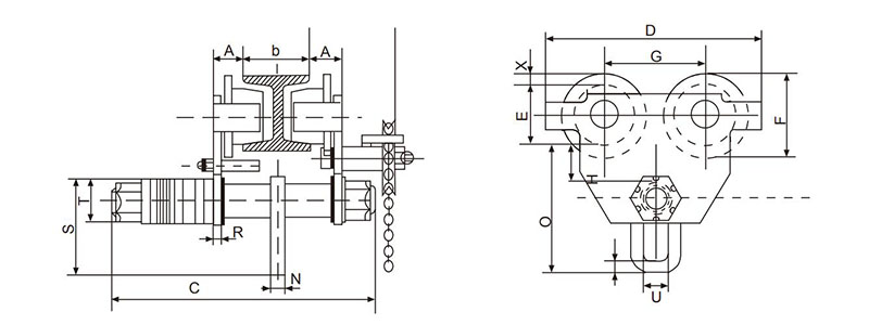 HGT05 500kg (1100lbs) রশ্মি চক্রের উন্নত পার্শ্ব প্রস্থ: 64-140mm (2.5-5.5in।);